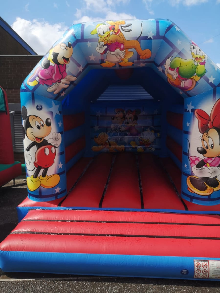 Wow take a look at this real eye catching Mickey Mouse themed bouncy castle, featuring stunning laser printed gloss artwork.